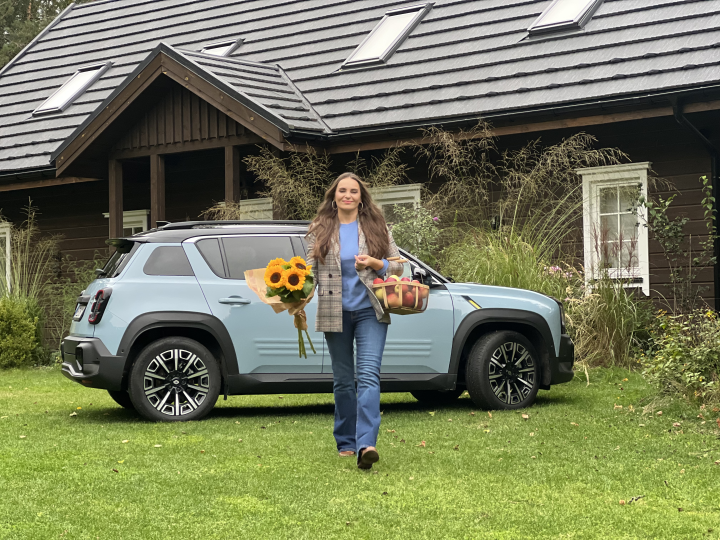 Tokiam jos gyvenimo būdui, bei tam, kad kelionėssu šeima būtų patogios ir draugiškos aplinkai, Kotryna pasirinko 100 %elektrinį „Renault 4 E-Tech electric“ – modernų, praktišką ir stilingąautomobilį, kuris jungia šiuolaikines technologijas ir atsakingą požiūrį įgamtą. Nuo kasdienių kelionių į mokyklą ar turgų, iki išvykų su šeima į sodybą– šis automobilis tapo nauja jos gyvenimo ritmo dalimi.