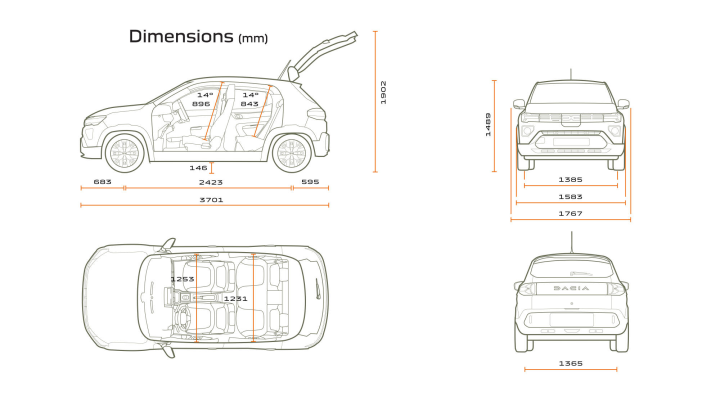 „Spring“ visada komplektuojamas su masėje dažytomis plastikinėmis dalimis, o „Extreme“ komplektacijoje – su guminiais kilimėliais ir durelių slenksčiais papildomam tvirtumui. Jis išlieka praktiškas kasdieniam naudojimui su geriausiu savo klasėje bagažinės tūriu: 308 litrai – ir net 1 004 litrai nulenkus galines sėdynes. Tai yra žymiai erdviau nei kitų A segmento transporto priemonių ir atitinka B segmento modelio talpą. „Spring“ salone taip pat yra daug daiktadėžių – daiktadėžė prietaisų skydelyje, centrinė konsolė, dėtuvės durelėse – kurių bendras papildomas tūris viršija 32 litrus, nustatant naują standartą savo kategorijoje.