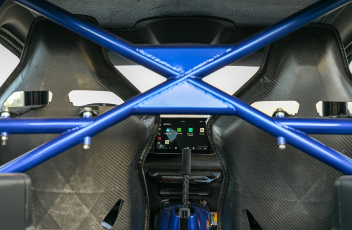 „Alpine“ sukurto „Renault 5 Turbo 3E“pagrindą sudaro pagal užsakymą pagaminta aliuminio platforma, optimizuotaanglies pluošto elementais, įskaitant viršutinę pertvaros dalį ir dalį grindų.